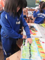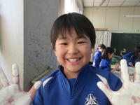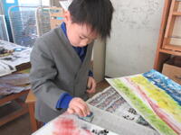 中には、指や手のひらを版の代わりにして表現する子もいました。