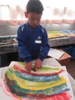 子どもたちは、その色の付き方の違いを楽しみながら、作品作りに取り組んでいました。