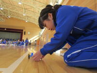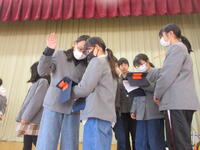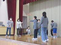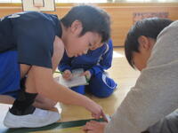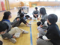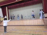 今日11月8日(金)の1校時、体育館に2つのグループが集まって、練習をしていました。