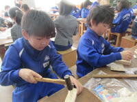2024年11月7日 12時30分 今日11月7日(金)の4校時、3年2組の子どもたちが、図画工作科「くぎうちトントン」に取り組んでいました。