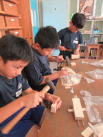 新しい道具を使うときは、なんだか、ドキドキ わくわく するものです。みんなニコニコと、思い思いの作品をつくりながら、釘打ち体験を楽しんでいました。