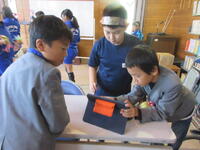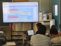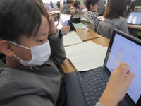 今日11月5日(火)の2校時、1組の教室では、事前に、インターネットで調べた身近な道具について、教科書の例を参考にしながら、デジタルノートで情報を整理していました。