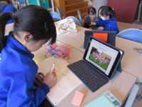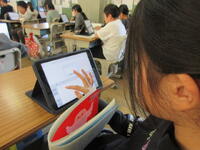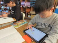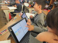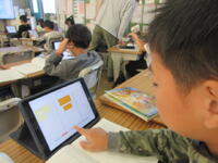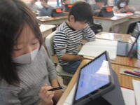 上手にレポートをまとめるため、タブレットを「道具」として使いこなしている3年生の子どもたち。たいしたもんだ。
