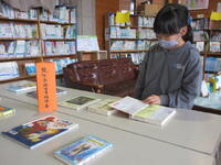 今日11月1日(金)も、たくさんの子どもたちが休み時間などに足を止めて見ており、早速、紹介されている本を手に取って借りる子どももいました。