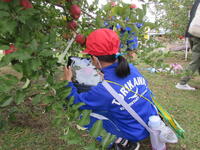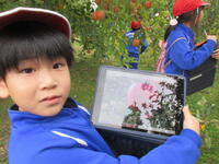 子どもたちは、リンゴが落ちないように、傷つかないように、注意しながら写真撮影していました。