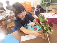 今日11月10日(火)の3・4校時、4年2組の子どもたちが、図画工作科「ひみつのすみか」に取り組んでいました。