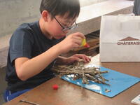 学校や自宅の周りで拾ってきた小枝や葉っぱなどの自然物を使って、ひみつのすみかを作ります。