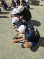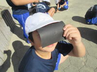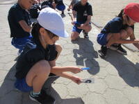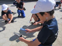 今日10月25日(金)の4校時、1組の子どもたちが、「太陽の光を虫眼鏡で集める」実験をしていました。