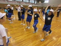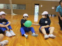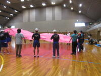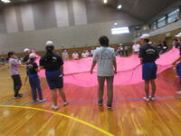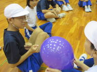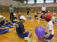 開会行事のあと、「バルーンで遊ぼう」や「まねっこ遊び」、「ばくだんゲーム」などの活動を楽しみました。