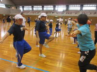 今日10月4日(金)の午前中、福島トヨタクラウンアリーナ(国体記念体育館)を会場として、福島地区にある小学校の特別支援学級と特別支援学校小学部合同の「なかよし交流会」が開催され、本校のかがやき学級、わかば学級の子どもたち(5・6年生)が参加しました。