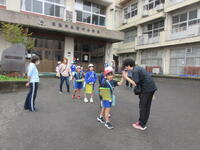 子どもたちは、事前の生活科の時間に、質問の内容を決めたり、インタビューの仕方を練習したりして準備万端です!