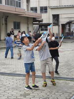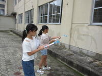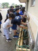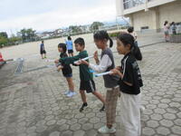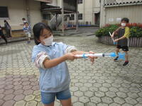 みんなで、水でっぽうのとばしっこ競争を楽しみながら、学習のまとめができました。