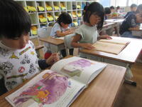 2校時には1年2組、3校時には1年1組の子どもたちが、それぞれ国語の時間に図書室を訪問し、本の借り換えをしていました。