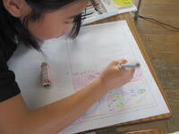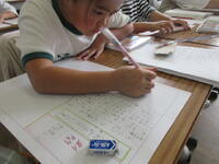 今日10月7日(月)の3校時、1組の教室では、先日社会見学に行ったスーパーマーケットについて、見たり、聞いたり、自分たちで調べたことをまとめた新聞を作っていました。