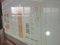 教科書に掲載された新聞の例を参考に、たくさん売るための工夫や、お客さんにとって便利なこと、見学時の感想やスーパーに関するクイズなど、色ペンを使いレイアウトもカラフルに・・・。