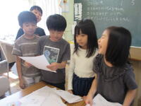 グループで話し合い、「どんなこと」を「誰」がインタビューするのかを決め、インタビューの練習にも取り組んでいました。