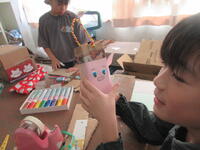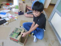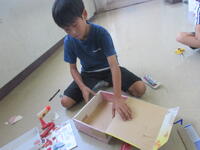 今日10月1日(火)の3・4校時、4年2組の子どもたちが、図画工作科「おもしろだんボールボックス」に取り組んでいました。