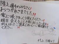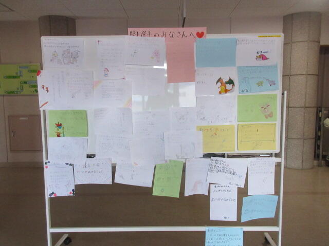 大会から戻ってきた選手たちを迎えたのは、大会に参加しなかった子どもたちから、選手たちに向けて「お疲れ様でした!」のメッセージの数々…。