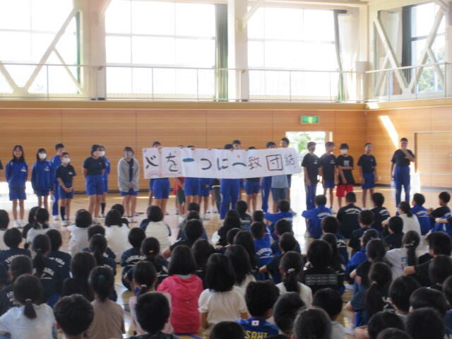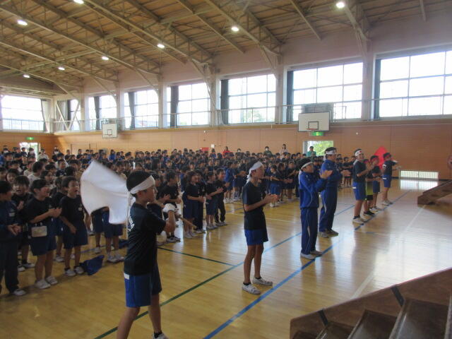 校長からの激励の言葉の後、代表選手による出場選手の紹介、5年生応援団からの元気よいエールがありました。