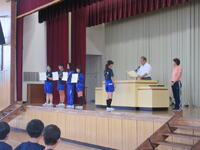 また、陸上大会の壮行会に先立ち、8月から9月にかけて表彰のあった各種コンクール等の賞状伝達を行いました。