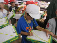 見学中の子どもたちは、見たこと、聞いたことをしっかりメモしていました。
