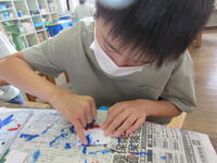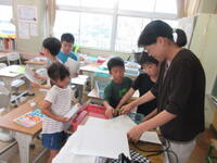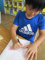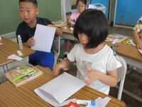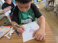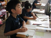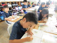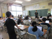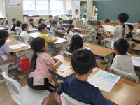 今日8月26日(月)の3校時は、それぞれの教室で、おうちの人への買い物調べ(インタビュー調べ)の準備に取り組んでいました。