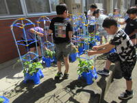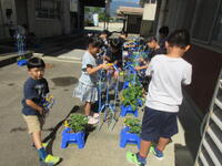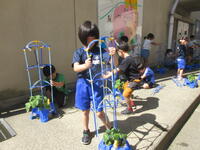 1年生は、毎朝、アサガオの水やりを頑張っています。