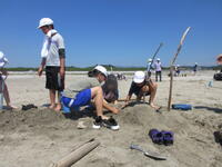 最初は、なかなか切れないよ~と悪戦苦闘していた子も、要領をつかむと、どんどんのこぎりを引いていました。
