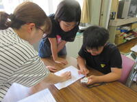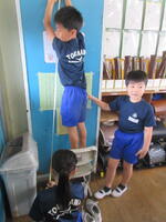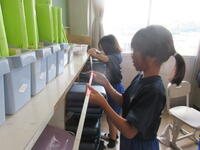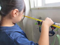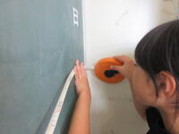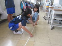 一人で測ることができないところは、友だちと協力しながら、長さを測りました。