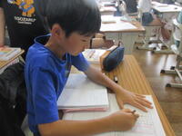 算数科の学習で、巻尺の使い方や巻尺を使うとよい場面について学んだ3年1組の子どもたち。