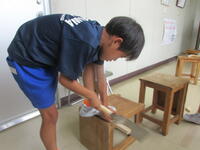 図工室のあちこちで、ギコギコという音。木はけっこう堅いようです。