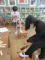 次の時間は、金づちをつかって、くぎ打ちです。どんな作品が出来上がるのでしょう。楽しみです。