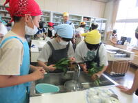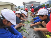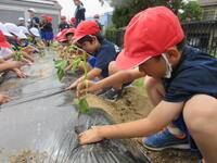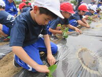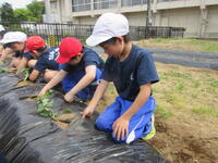 今日5月15日(水)の5校時、学校園を覗くと、2年生がさつまいもの苗植えをしていました。