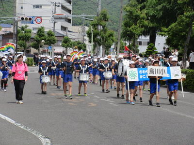 本校からは6年生が参加し、ミニストップ福島新浜店前~本法寺前交差点、そして、福島文化幼稚園前~陣場町交差点までのコースをパレードしました。