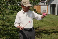 3年生は、“リンゴの先生”からの説明をしっかり聞き、ピンク色に着色された花粉を、花の中心にあるめしべに優しくつけました。