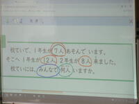 今日の問題文は「校ていで、1年生が7人あそんでいます。そこへ1年生が12人、2年生が8人来ました。校ていには、みんなで何人いますか。」