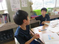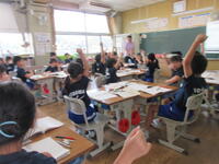 今日8月27日(火)の2校時、1組では、3つの数をたし算するときに、たす順番を工夫することで、計算がしやすくなる方法をみんなで考えていました。