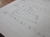 まずは、一人ひとり、自分の考えをノートに記入します。「10のまとまりをつくればいいんじゃないかな」「サクランボ計算は使えないかな」・・・これまでの学習経験から、あれこれ考えます。