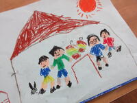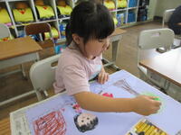 夏休みを振り返って、思い出に残っている出来事をクレヨンを使って絵に表します。
