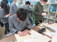 2024年12月5日 12時30分 今日12月5日(木)の2・3校時、6年1組の子どもたちが、図画工作科「一枚の板から」に取り組んでいました。