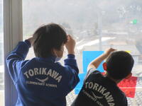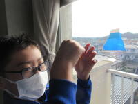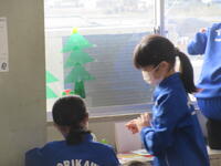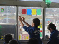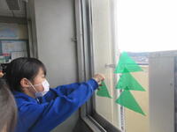 窓から見える景色を生かしながら、教室の窓ガラスに貼って飾ります。