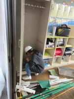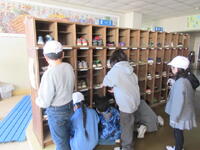 机の裏側についたごみをとったり、ランドセルの棚の中を拭いたり、くつ箱を拭いたり。
