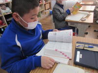 図書室から国語の辞典を借りてきた子どもたちは、さっそく、その言葉の意味を調べ、用例をノートに記入していました。