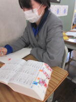 なかには、持参した「My辞書」を使って調べる子の姿も。