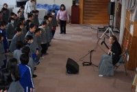 文化庁「文化芸術による子どもの育成事業」の一環として,5,6年生が津軽三味線演奏者佐藤通弘先生の演奏を聴きました。三味線の生演奏は初めての児童がほとんどで,とても興味深く演奏に聴き入りました。「ねぶた」や「ねぷた」の曲では,かけ声をかけたり,飛びはねたり,楽しく日本の文化芸術に触れることができました。