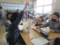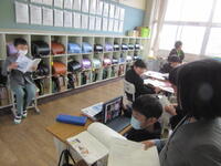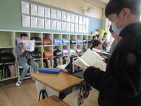 今日4月24日(月)の1校時、1組の教室では、学習したことをもとに、グループごとに分かれて、音読の練習に取り組んでいました。