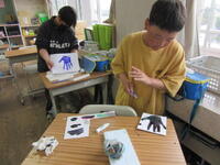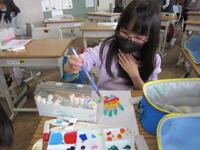 今日4月26日(水)の1.2校時、1組の子どもたちが、今までに学習したテクニックを駆使して、楽しそうに作品制作に取り組んでいました。