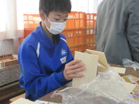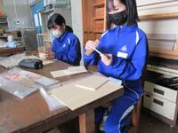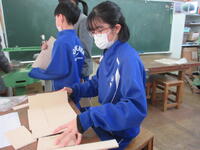 一枚の板から、切り方や組み合わせ方を工夫して、生活に役立つ入れ物を作る活動です。