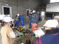 DVDを鑑賞して、消防署の方々の仕事内容について理解を深めたり、救急車やポンプ車の特徴を教えていただいたり、実際に火災現場で使用する機械・道具を教えていただいたり・・・。