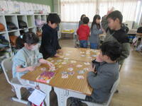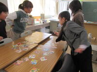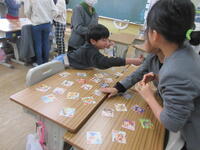 「なんだろう」と覗いてみると、グループに分かれて「いろはかるた」で盛り上がっていました。
